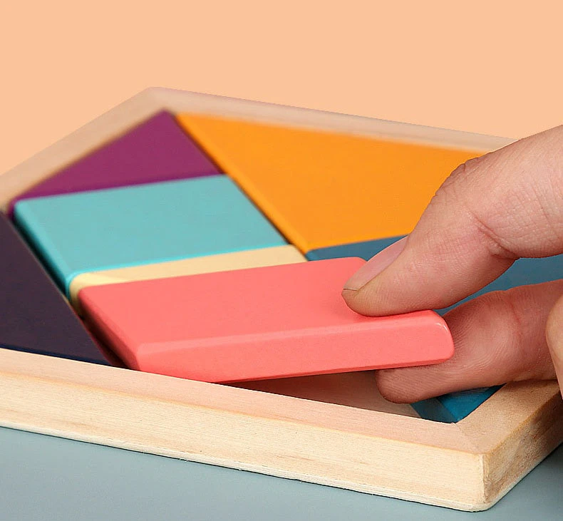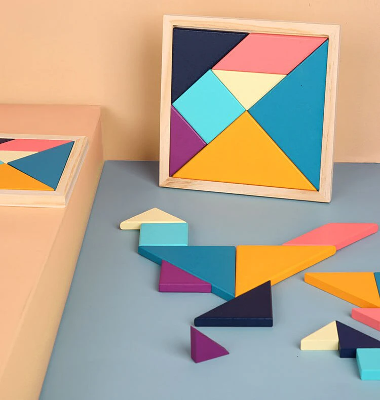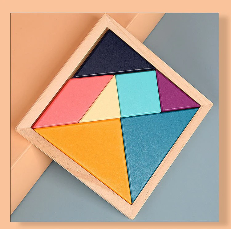 Your child will enjoy figuring out how to fit each piece into the wooden frame and can also create their own colourful creative shapes outside of the frame using their imagination and problem solving skills.