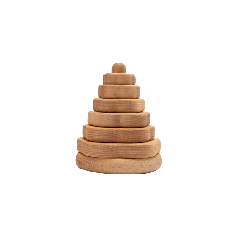 The wooden stackers are 11cm high and made to be just the right size for the grasp of a baby.