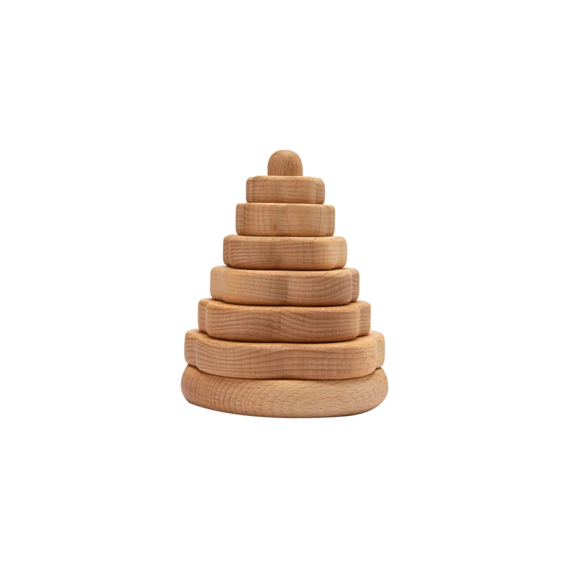 Two beautiful options are available for this wooden stacking toy - a five pointed star stacker or a floret shape.