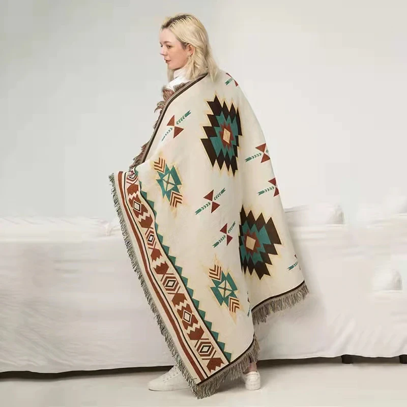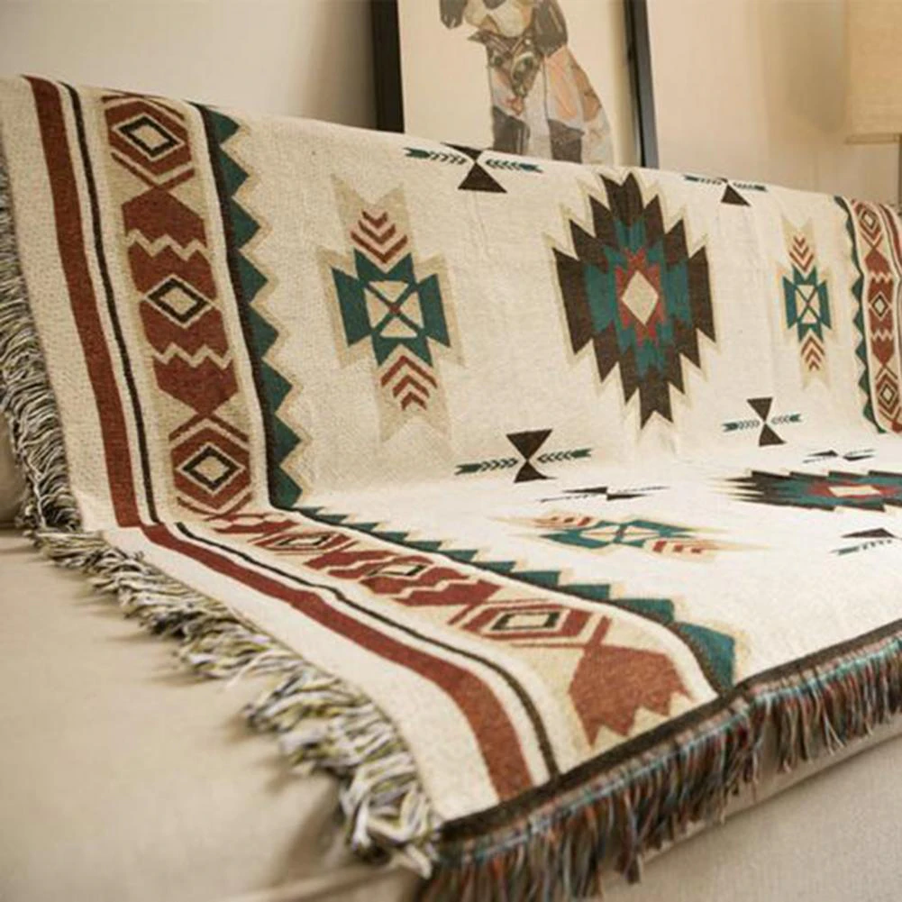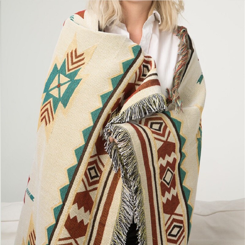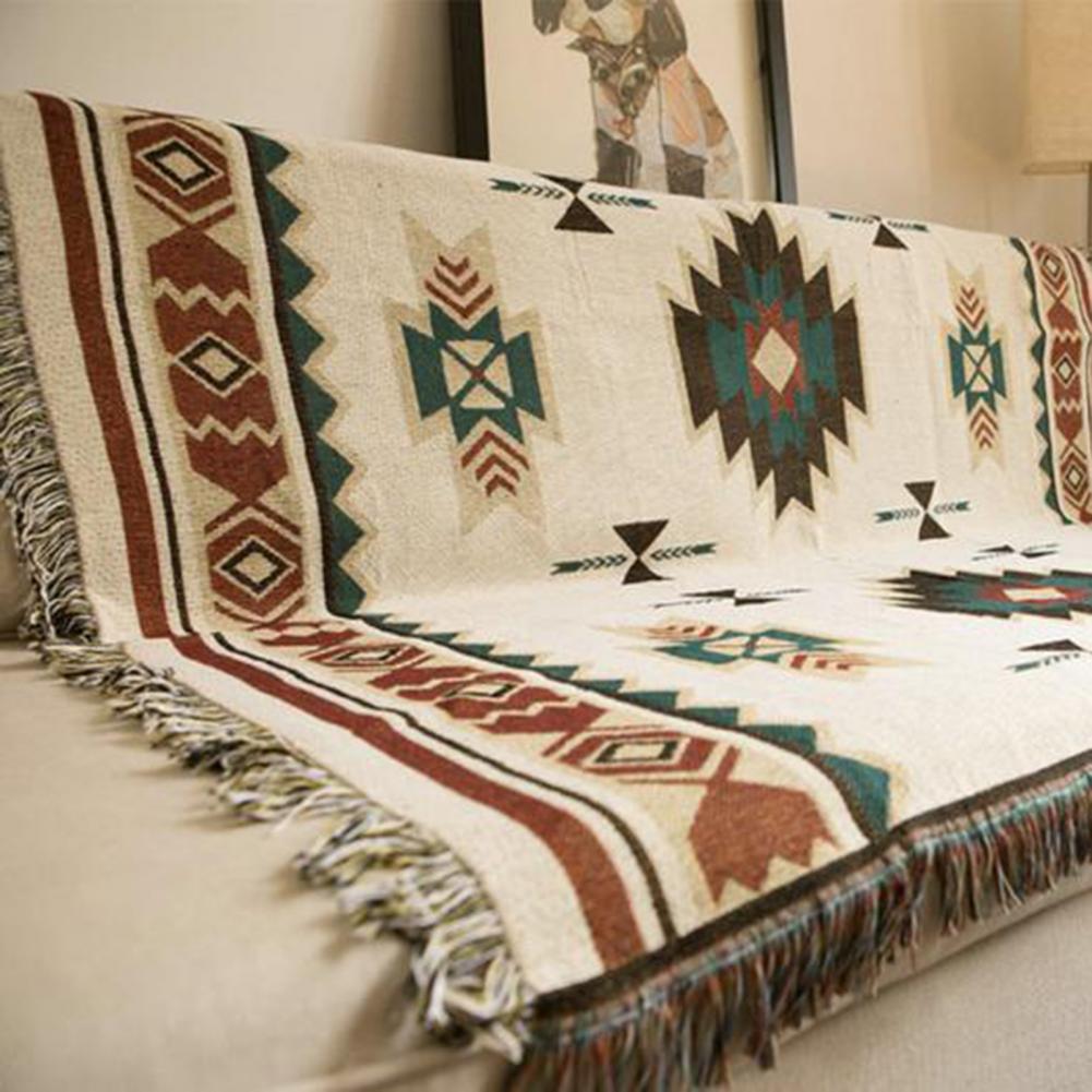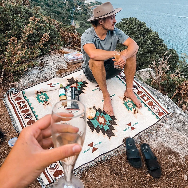 This woven Aztec inspired rug can be used as a picnic rug, tapestry, throw or even as a mat.