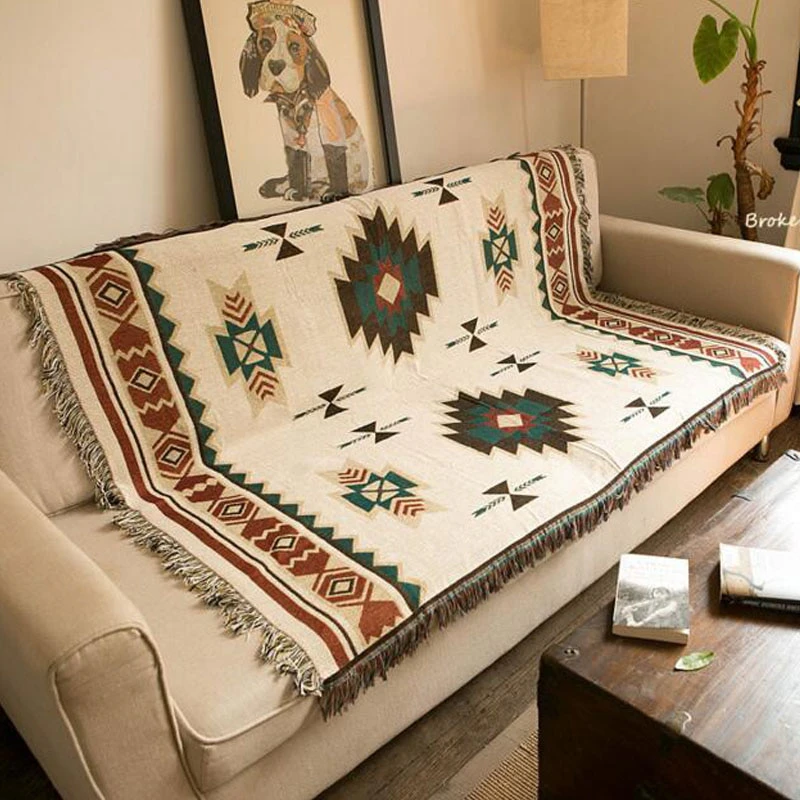 Crafted from cotton, this blanket features a colorful geometric design that is sure to add a pop of personality to any space. The fringed edge adds a touch of texture and visual interest, while the soft material makes it ideal for snuggling up on the couch or bed. Whether you're looking to add a touch of warmth to your décor or simply want a cozy blanket to curl up with, this tapestry blanket is a great choice.