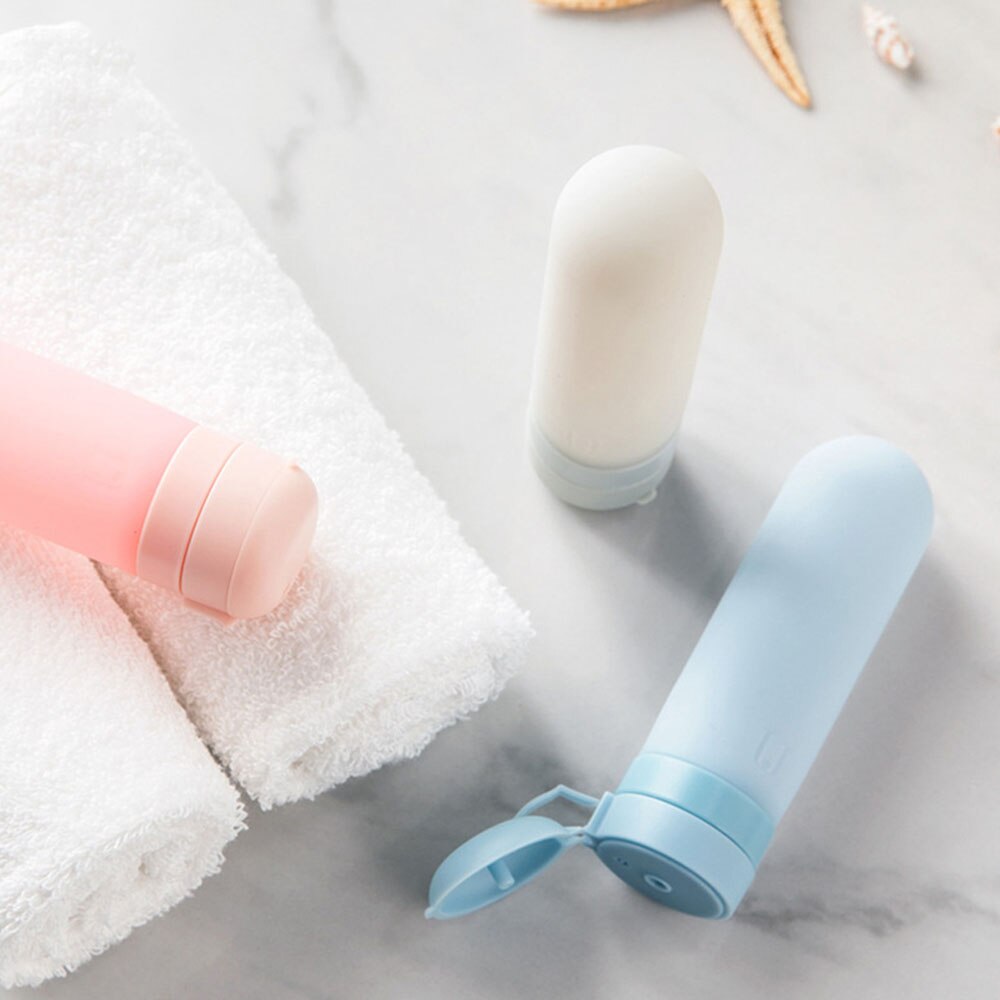The perfect gift for any traveller, especially one who is tired of leaky, hard-to-use travel bottles. The soft, flexible silicon material can be folded easily, so you don't have to struggle to get the remaining contents out of the bottles. This saves time and waste. The shape of the bottles aren't bulky, so won't take up much room in your cosmetic bag. Easy to use, unscrew the lid of the bottle and pour your desired contents on the inside. Do the same when cleaning the bottles out. Secure the bottles after using by simply pressing the lid down, snapping shut. Each bottle set comes with one blue, one pink and one gray travel bottle.
