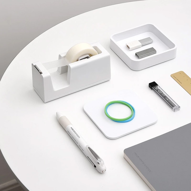 This tape dispenser is a must-have for any home or office. It's compatible with standard size tape rolls, making it easy to find replacements when you run out. The dispenser itself is easy to use and refill, making it a practical addition to your desk or workspace. And with its non-slip silicone base, you won't have to worry about it sliding around while you're using it.