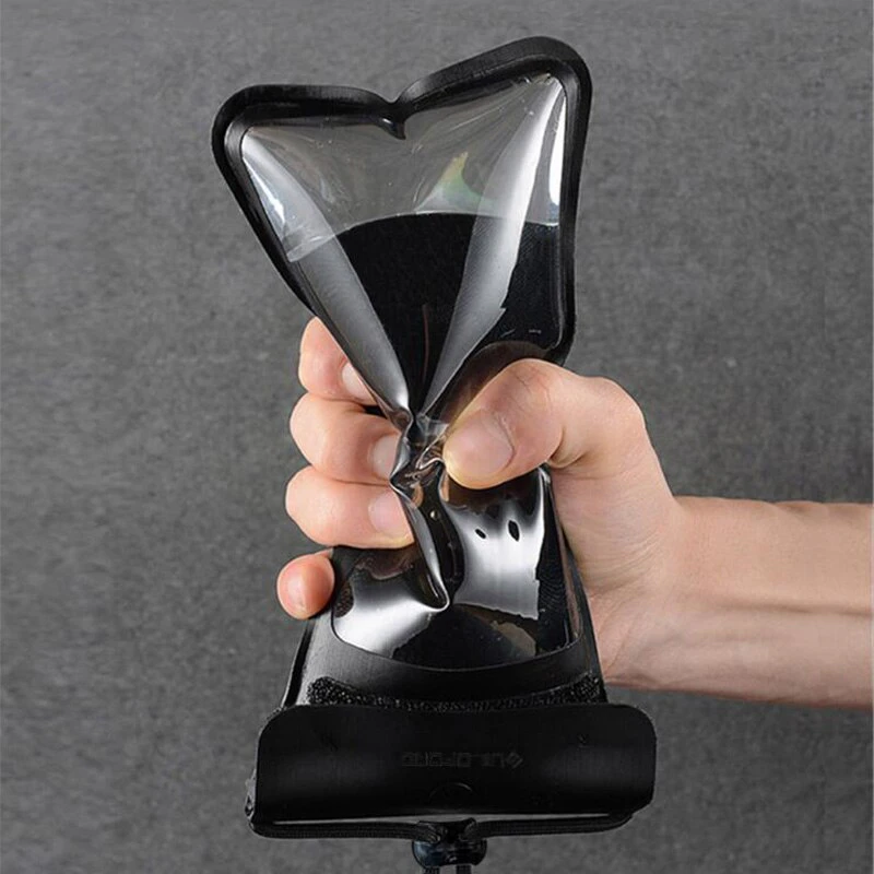 So your phone can come along for the adventure. This waterproof bag is perfect for kayaking on lakes, stand up paddle-boarding in the ocean, or even pool days. The clear front material allows you to use your phone while under water, so that you can capture those special moments in videos or photographs, or contact people when in danger. Simply open the bag, place your valuables inside, and seal to securely close. Attached is a drawstring strap, so you can attach the bag onto your arm or water equipment. Made of TPU and PET plastic material.