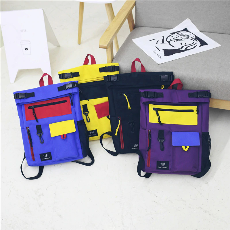 A versatile backpack for taking on adventures, running errands, and taking to work or school. Designed with two adjustable shoulder straps, as well as a grab handle at the top. The exterior is constructed using nylon material that is waterproof and durable. There is an elasticised mesh pocket on the side for easy access, where you can clearly see the contents and quickly grab what you need without dealing with stubborn zips. There are two zipped pockets on the front of the bag to keep your belongings secure, as well as a velcro pocket that is ideal for holding your phone. In addition to these ideal design components, a plastic carabiner is attached to the front so you can clip on other loose items such as drink bottles, or key tags. The interior is made of polyester and cotton, designed with a fabric divider for organising your belongings. The bag's large capacity is ideal for fitting bulky school textbooks, or transporting other belongings on-the-go. To close, simply unbuckle the two plastic release buckles at the top, without having to worry about zips.